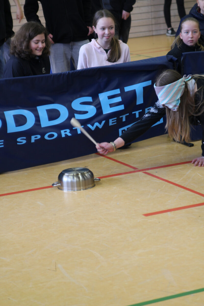 Die Ehrenrettung für die Lehrenden erfolgte in den beiden letzten Partien. Jahrelange Erfahrung im Ausrichten von Kindergeburtstagen gab den Lehrenden einen wichtigen Vorteil beim Topfschlagen und Volleyball-Ass Jan Pfaff schmetterte das Lehrerteam zum Sieg im Volleyball.