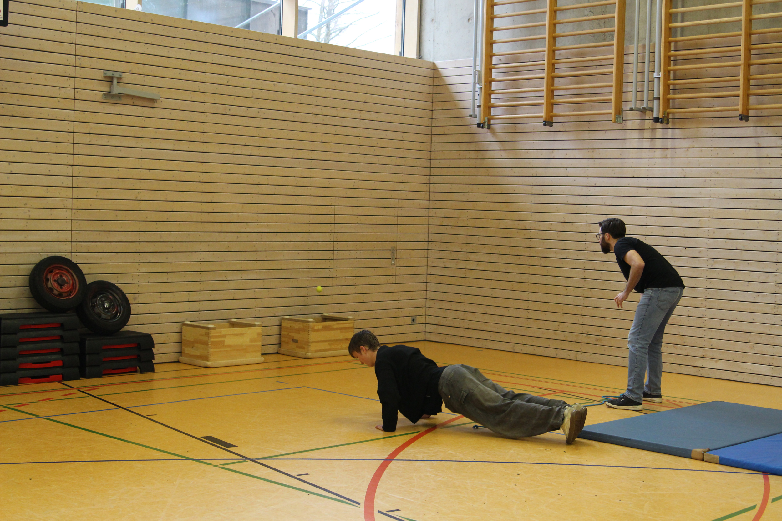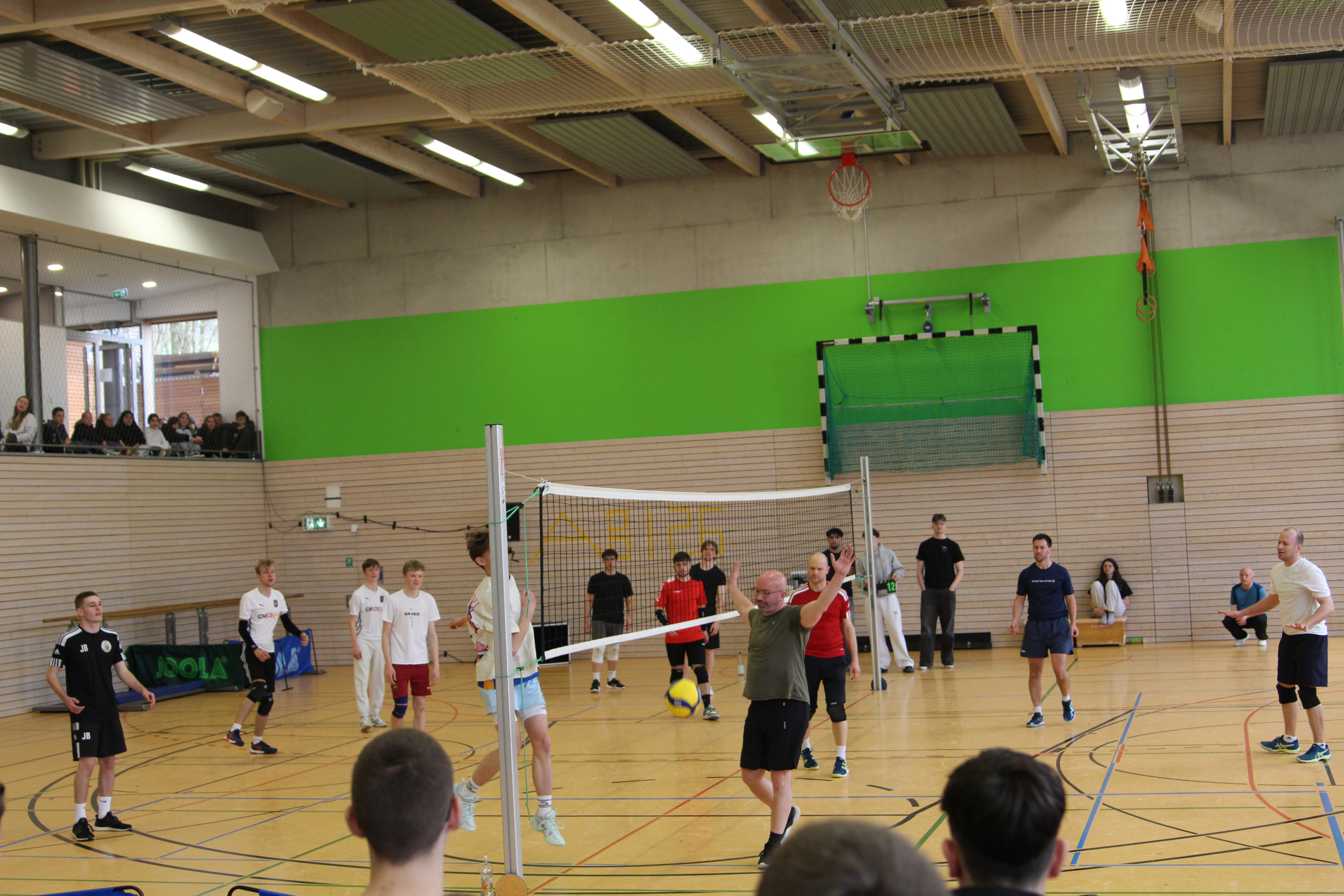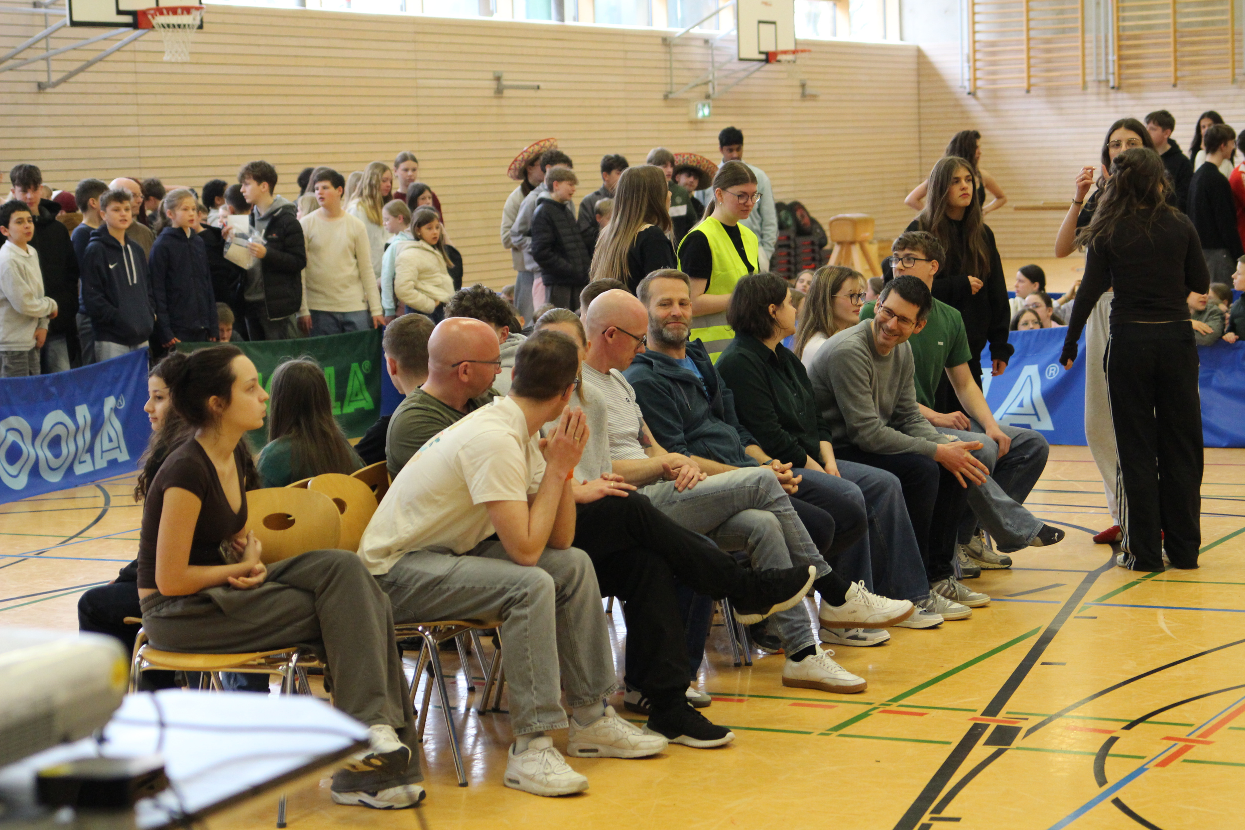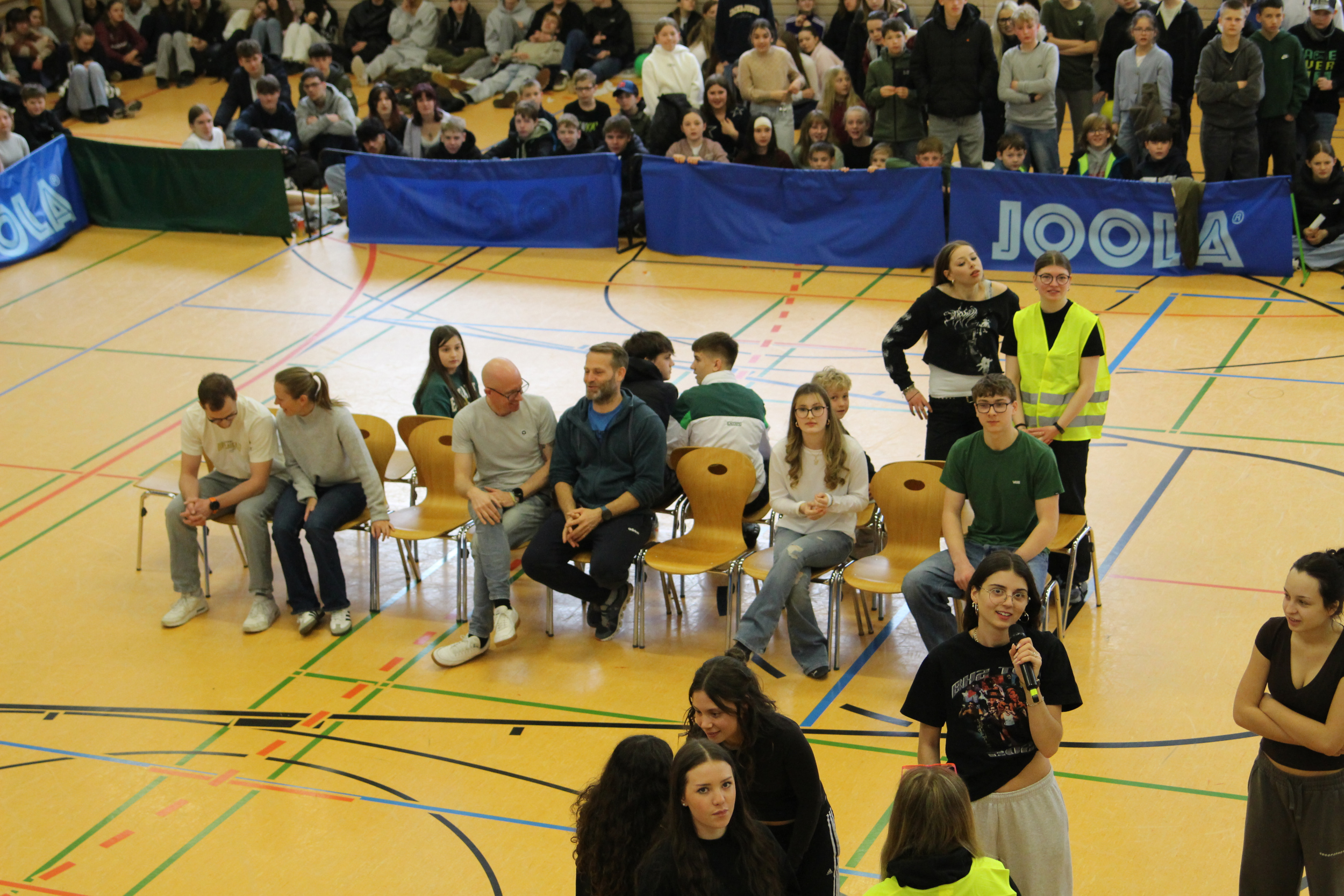 In insgesamt sechs Disziplinen galt es, die gegnerischen Teams zu besiegen. Sportlich wurde es gleich zu Beginn – auf der Hindernisbahn. Die Lehrer konnten zwar zunächst ein Unentschieden gegen die – wesentlich jüngeren – Abiturientinnen und Abiturienten erlangen, mussten sich dann aber in der Entscheidungsrunde geschlagen geben. Das zweite Spiel, Reise nach Jerusalem, begann für die Lehrenden zunächst vielversprechend und viele konnten sich lange im Spiel halten. Die Schnelligkeit der jüngeren Generation verschaffte dem Schülerteam aber schlussendlich den Sieg.