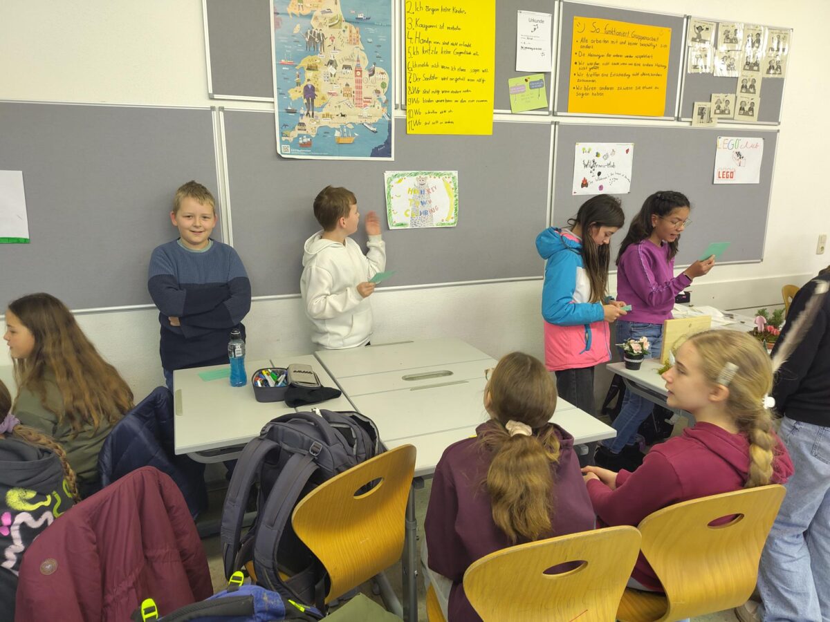 Die Klasse 6a sollte kreative Ideen für AGs entwickeln, die ihnen selbst besondere Freude bereiten würden. Dabei kamen vor allem praktische AGs wie Lego, American Football, Klettern, Reiten oder Kochen zum Zug. Science und Wilderness waren Angebote für Abenteurer. Die Gruppen gestalteten ihre Präsentationen im Sinne eines Marktplatzes der Möglichkeiten, der allen einen umfassenden Einblick in die Ideenwelt der Schüler und Schülerinnen gab.
