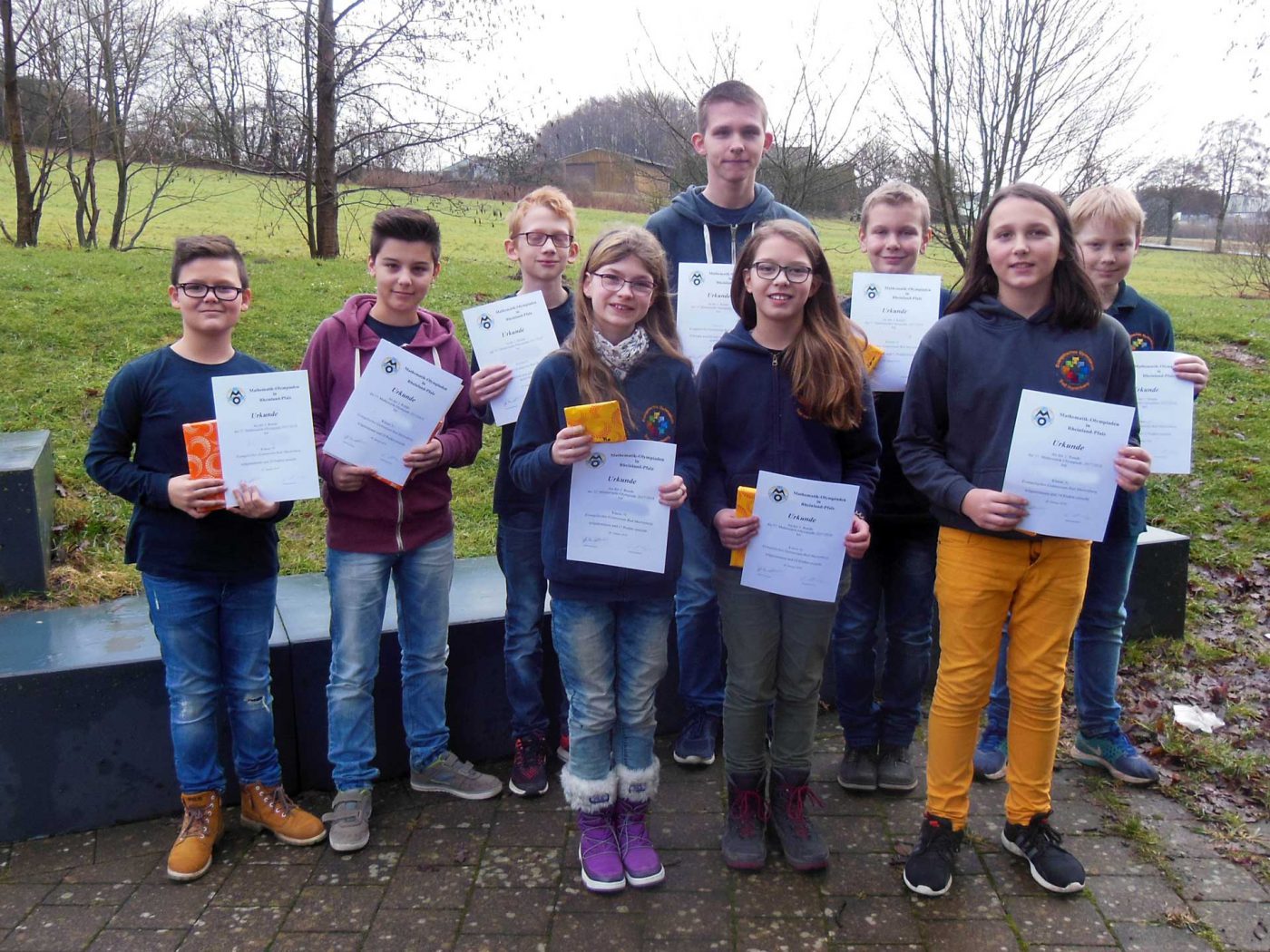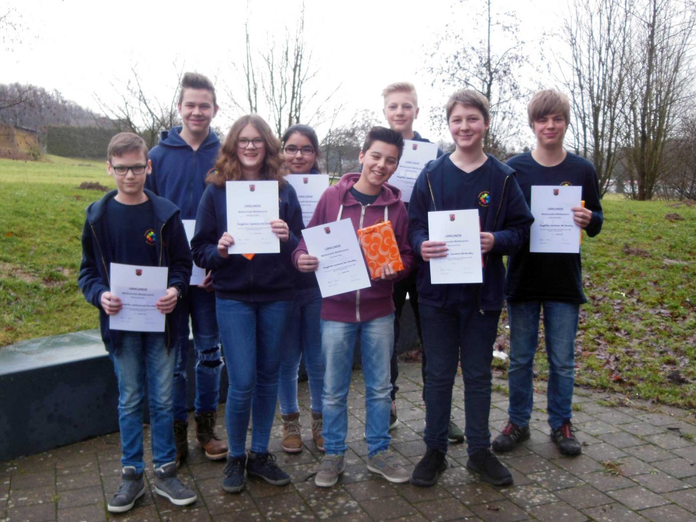 Am 09.11.2017 traten insgesamt 16 Schülerinnen und Schüler in der ersten Runde des Landeswettbewerbs Mathematik an. Dieser richtete sich vornehmlich an die achten Klassen. Joshua aus der Klassestufe 7 jedoch stellte sich dem Wettbewerb bereits ein Jahr früher. Insgesamt erzielten acht der 16 Schüler(innen) einen Preis: