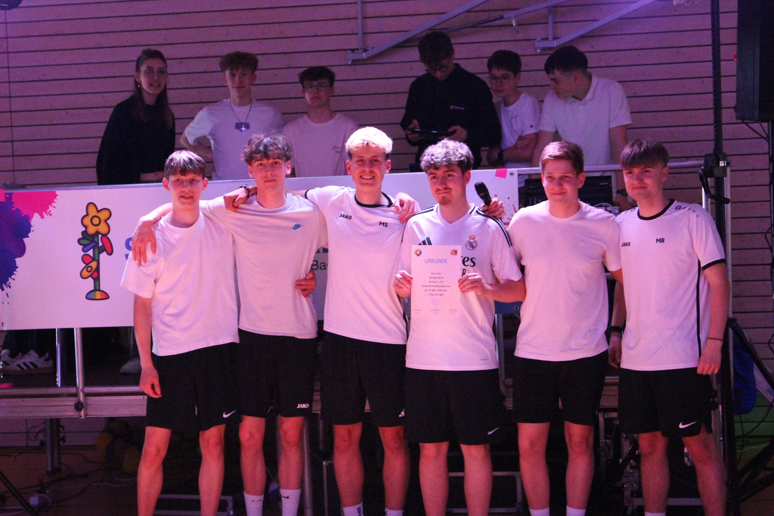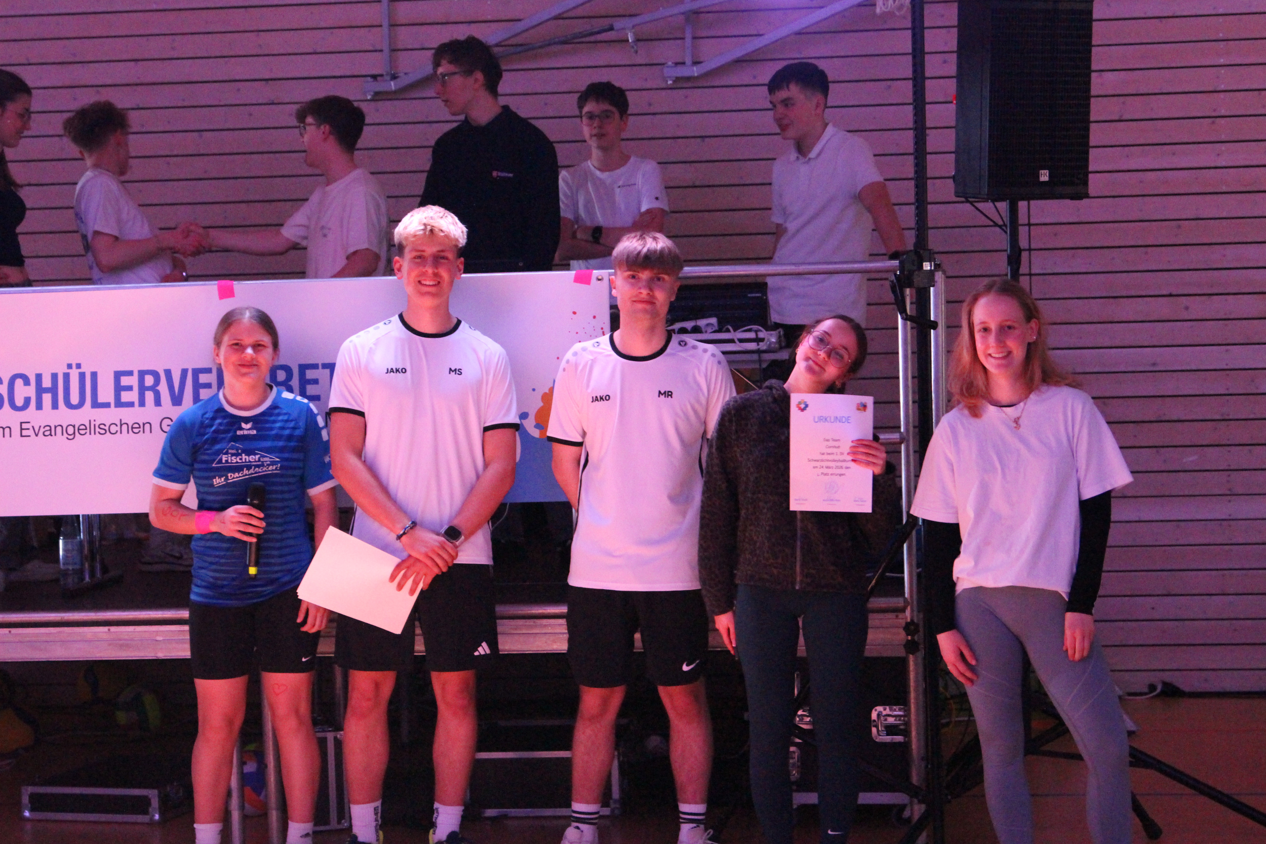 Es gibt Schwarzlicht-Parties, es gibt Schwarzlicht-Minigolf und es gibt – spätestens seit dem 24.03.2026 – auch Schwarzlicht-Volleyball. Die SV des EvGBM lud ab 18:00 Uhr zum ersten Turnier in diesem außergewöhnlichen Format ein.