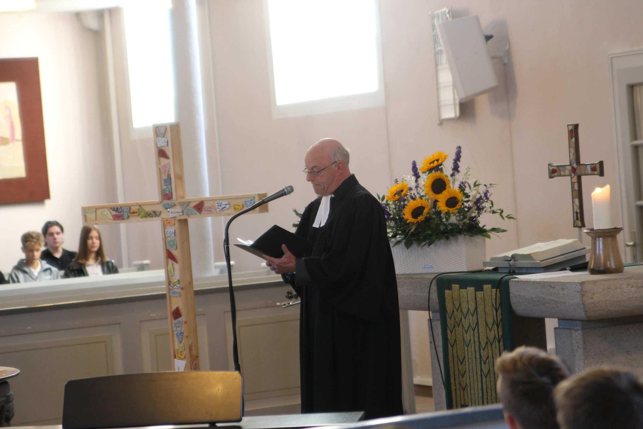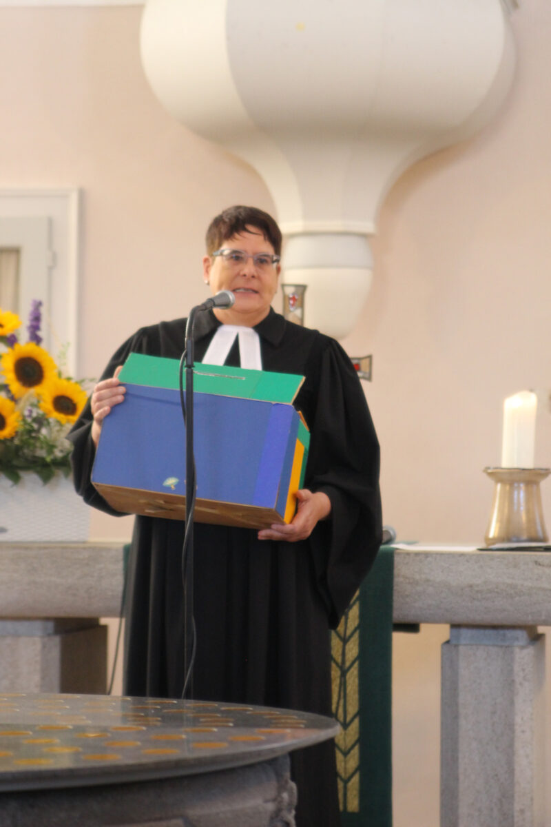 „Dies ist der Tag, den der Herr macht. Lasst uns freuen und fröhlich an ihm sein!“ Mit diesem Psalmwort begann der Festgottesdienst zum 20-jährigen Schuljubiläum in der ev. Kirche Bad Marienberg. Schulpfarrerin Anja Steinke und Pfarrer Peter Wagner führten die Gottesdienstbesucher aus Schule, Kirche und Politik durch die Liturgie des Gottesdienstes unter dem Jubiläumsmotto: „Wurzeln in der Tradition – Flügel für die Zukunft“: Psalm 1 und Jesu Gleichnis vom Hausbau nahmen diesen Gedanken auf, ebenso wie die Festpredigt von Frau Pröpstin S. Bertram-Schäfer, die ihn mit dem Bild eines Baumes veranschaulichte, welcher ebenfalls seine Wurzeln als sicheres Fundament für das Wachstum nach oben, in die Freiheit, braucht. Nur das starke Wurzelwerk, die Tradition des EvGBM, ermöglicht den Schülerinnen und Schüler ihr Potenzial zu entfalten und in ein vielversprechende Zukunft zu starten. Schülersprecherin Emma Lucke und Schülersprecher Matti Salzer und Simon Böer lasen eine Auswahl aus den zahlreichen Fürbitten, welche von Schülerinnen und Schülern aus den verschiedensten Jahrgangsstufen im Religionsunterricht geschrieben und gesammelt wurden, vor.