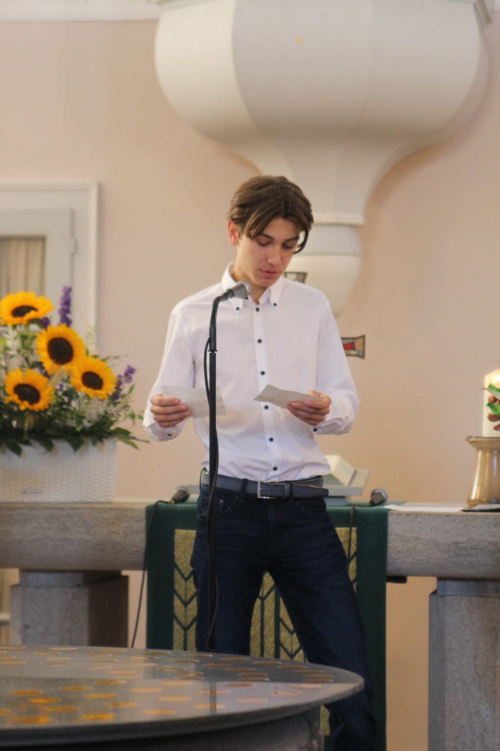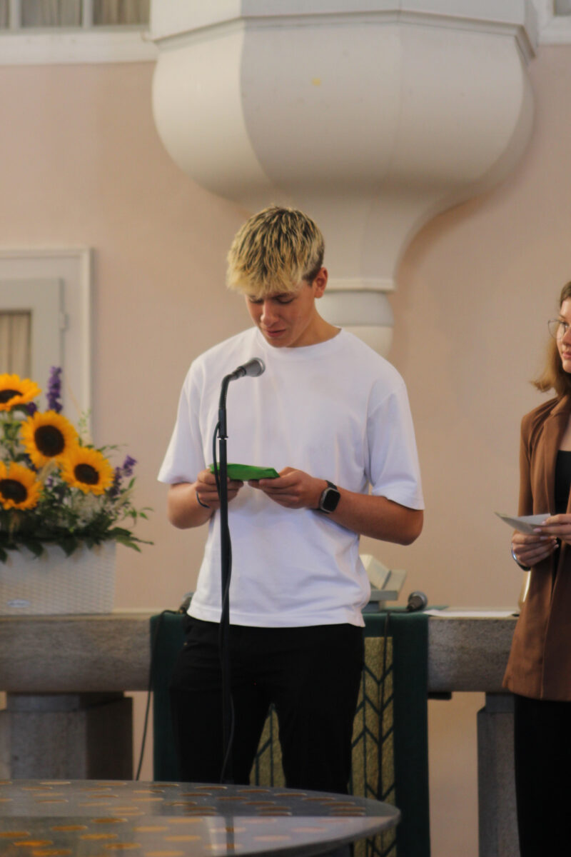 Der Schulchor und die Band (unter Leitung von Dorothea Kempf und Florian Wind-Giesewetter) begeisterten die Festgemeinde mit den Stücken „The Prayer“, „Gratitude“ und „Love is Love“. Oliver Thinius begleitete den Gottesdienst gekonnt an der Orgel. Wir danken für die Kollekte in Höhe von 333,25 €, mit der das Hilfsprojekt Utho Nghati unterstützt und Jugendlichen in Afrika eine bessere Zukunft ermöglicht werden kann. Fröhlich und festlich eingestimmt und unter Gottes Segen gestellt konnten sich alle auf den Weg zum zweiten Teil des Festtages in die Mensa des EvGBM begeben.