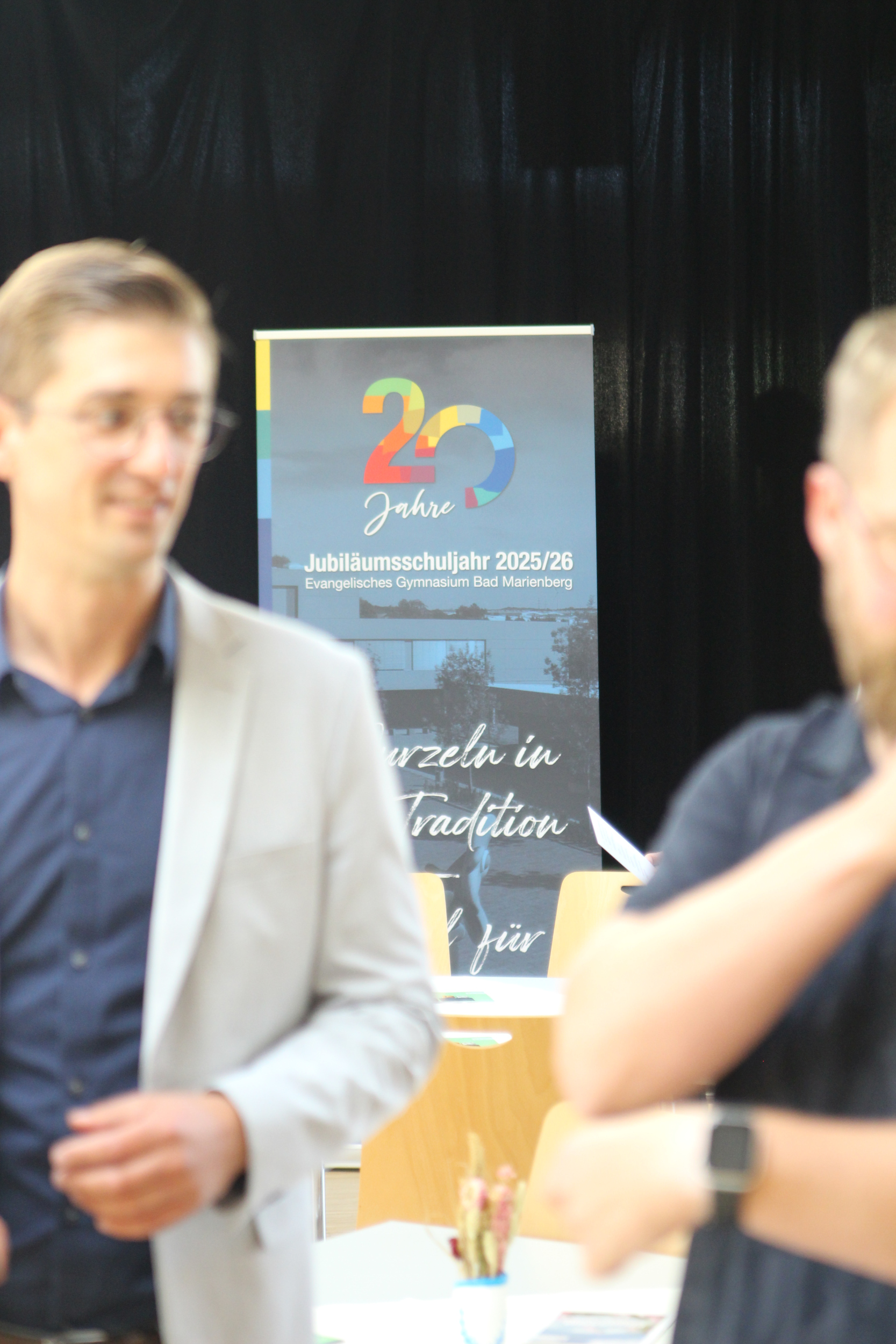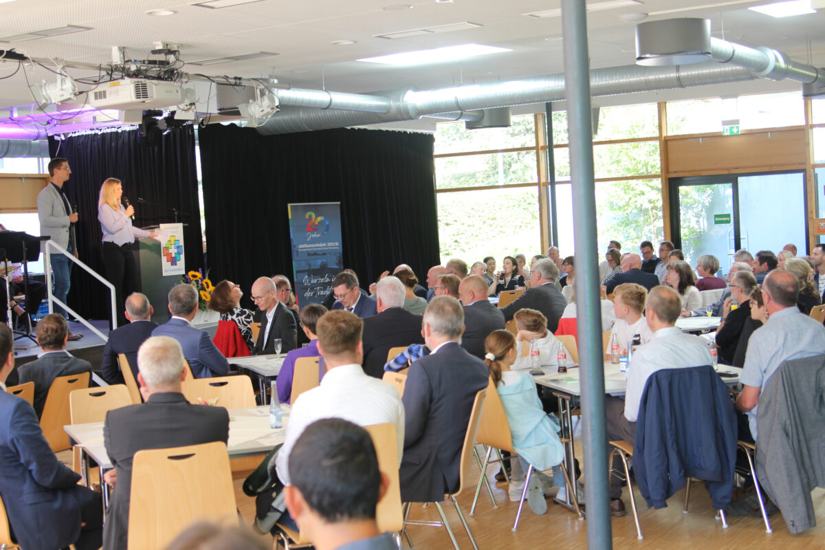 Auch die Schulgremien des Fördervereins (vertreten durch Thomas Bender), des Schulelternbeirates (Susann Usinger), der Mitarbeitervertretung (Sandra Mieczkowski) und der Schülervertretung (Emma Lucke und Matti Salzer) blickten auf 20 ereignisreiche Jahre zurück. Bender betonte die aktive Mitgestaltung und Unterstützung, die der Förderverein mit voller Begeisterung und viel Engagement in der Vergangenheit leistete und auch in der Zukunft leisten möchte. Usinger blickte auf den Wandel der letzten zwei Jahrzehnte und die Kontinuität der Werte am EvGBM, während Mieczkowski an die Mitarbeitenden erinnerte, die mit ihrer Arbeit das starke Fundament der Schule darstellen und den Grundstein für 20 erfolgreiche Jahre bilden.