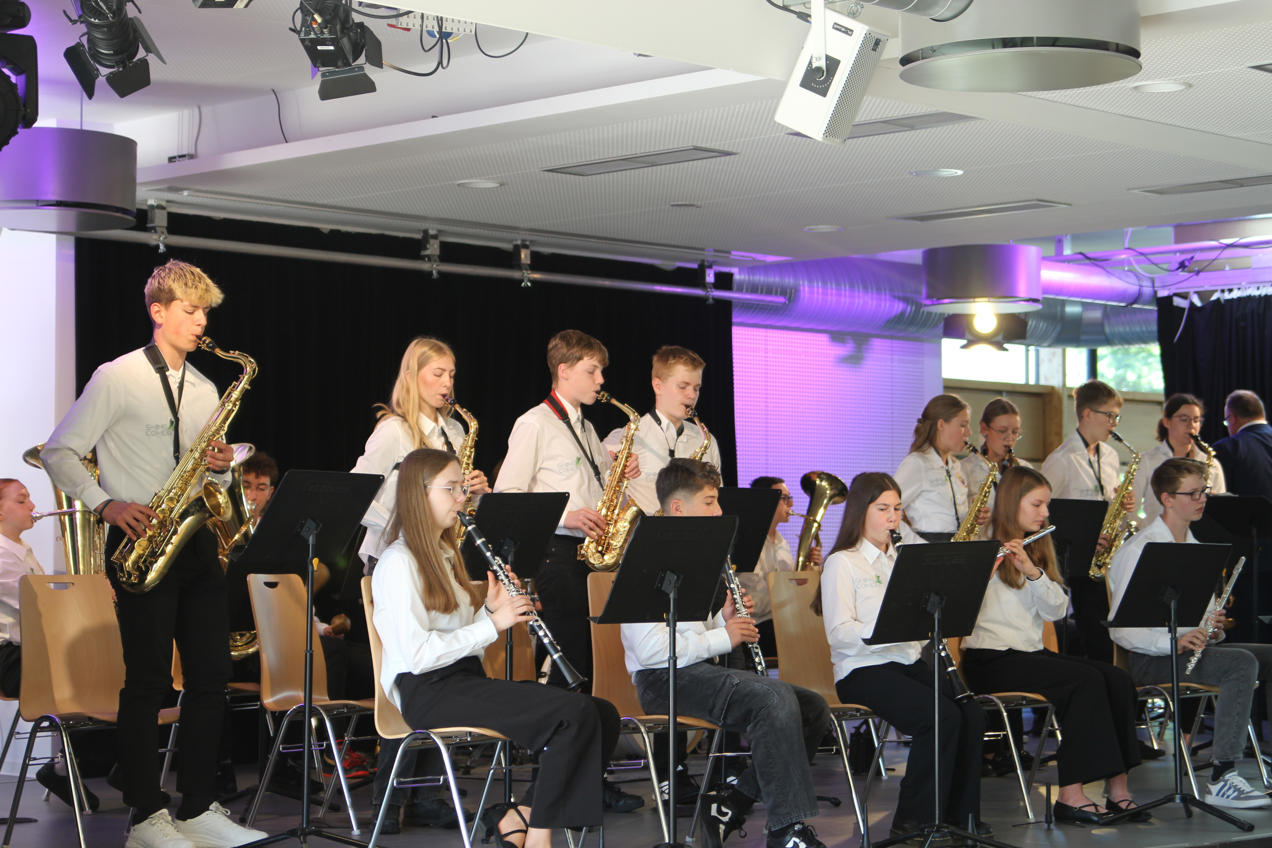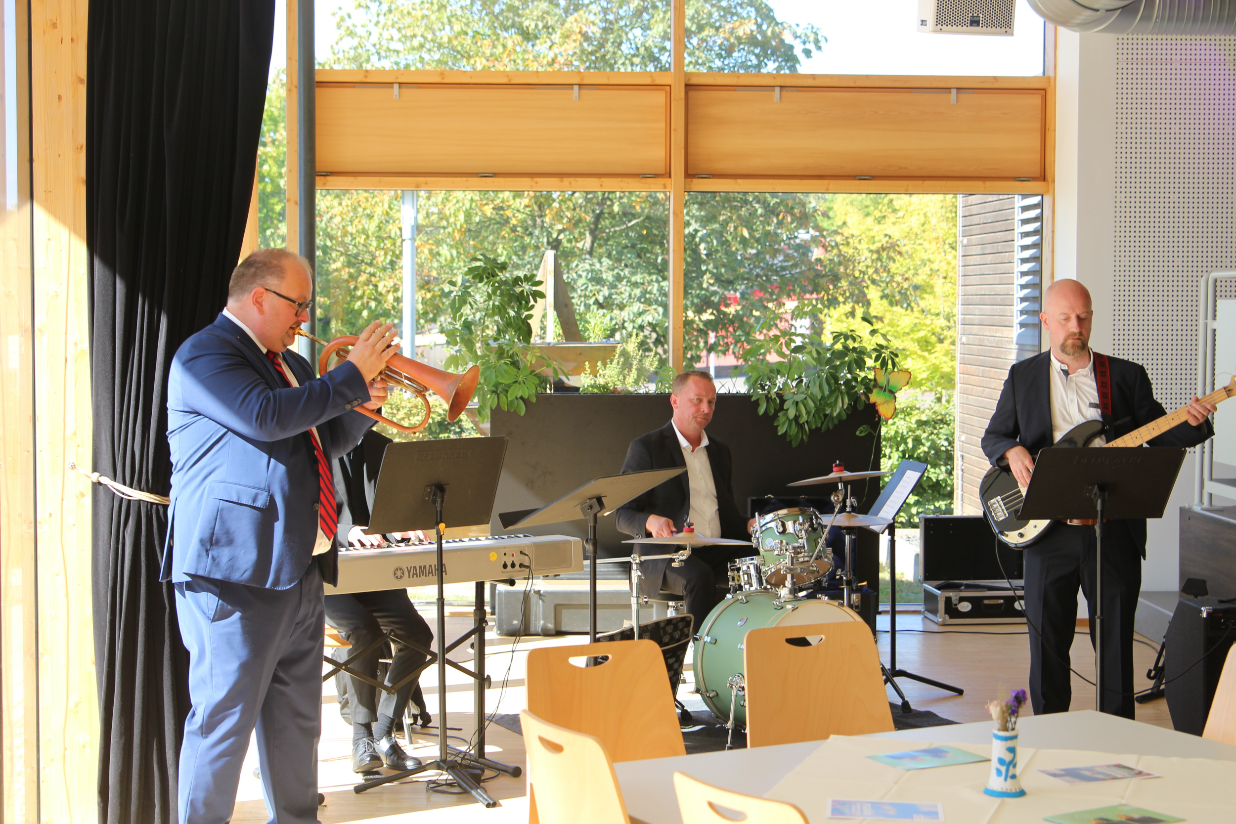 Die musikalische Begleitung des Festaktes stand unter der Federführung von Marco Jeuck, der sowohl mit seiner Swing-Combo, als auch mit seinem Jazz-Emsemble (mit Torben Böhm, Markus Benner und Leo Wildauer) für gute Unterhaltung sorgte. Petra Thelen-Meier und Florian Wind-Giesewetter moderierten die Veranstaltung humorvoll und charmant und riefen der Festgesellschaft allerlei schöne und lustige Erinnerungen ins Gedächtnis.