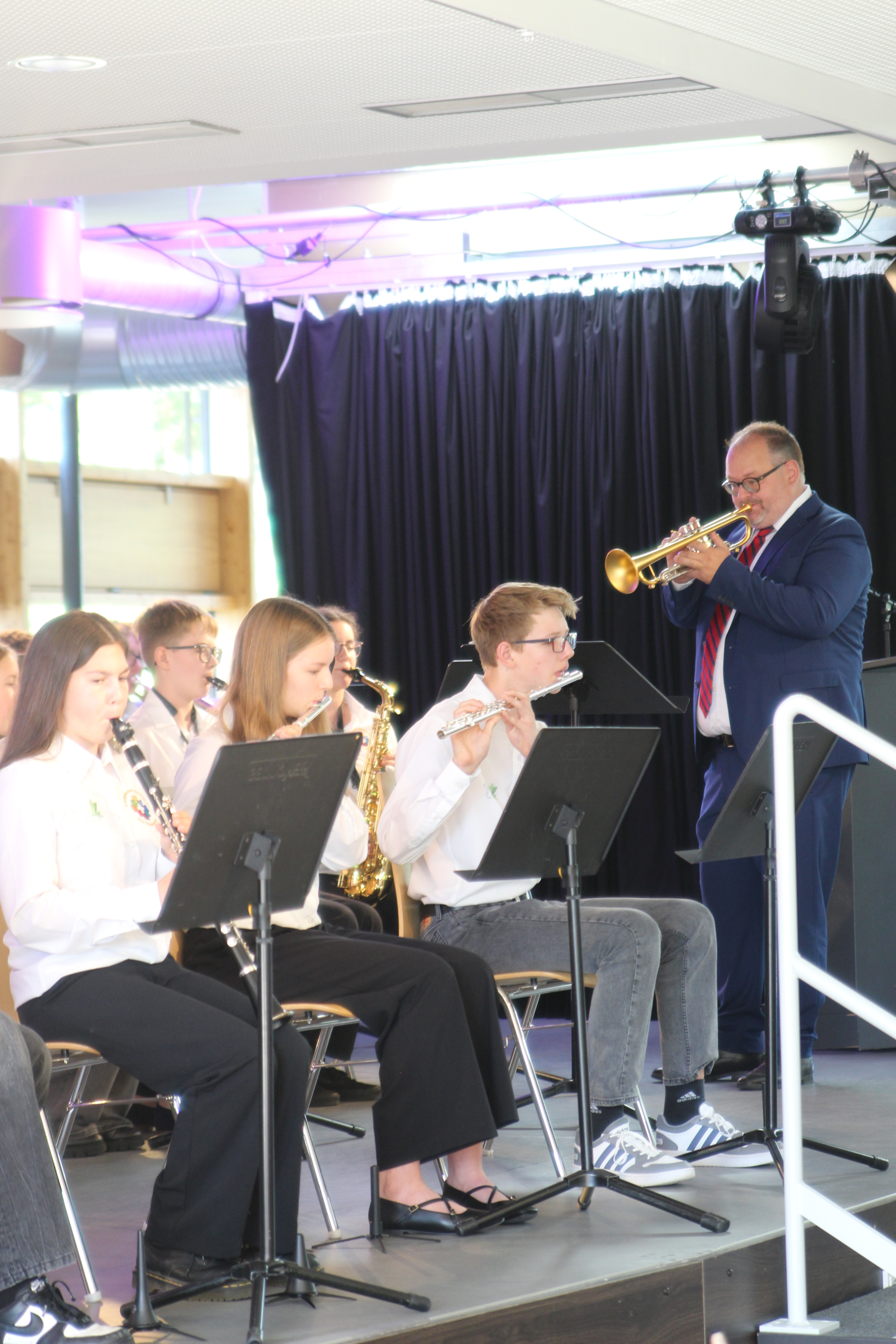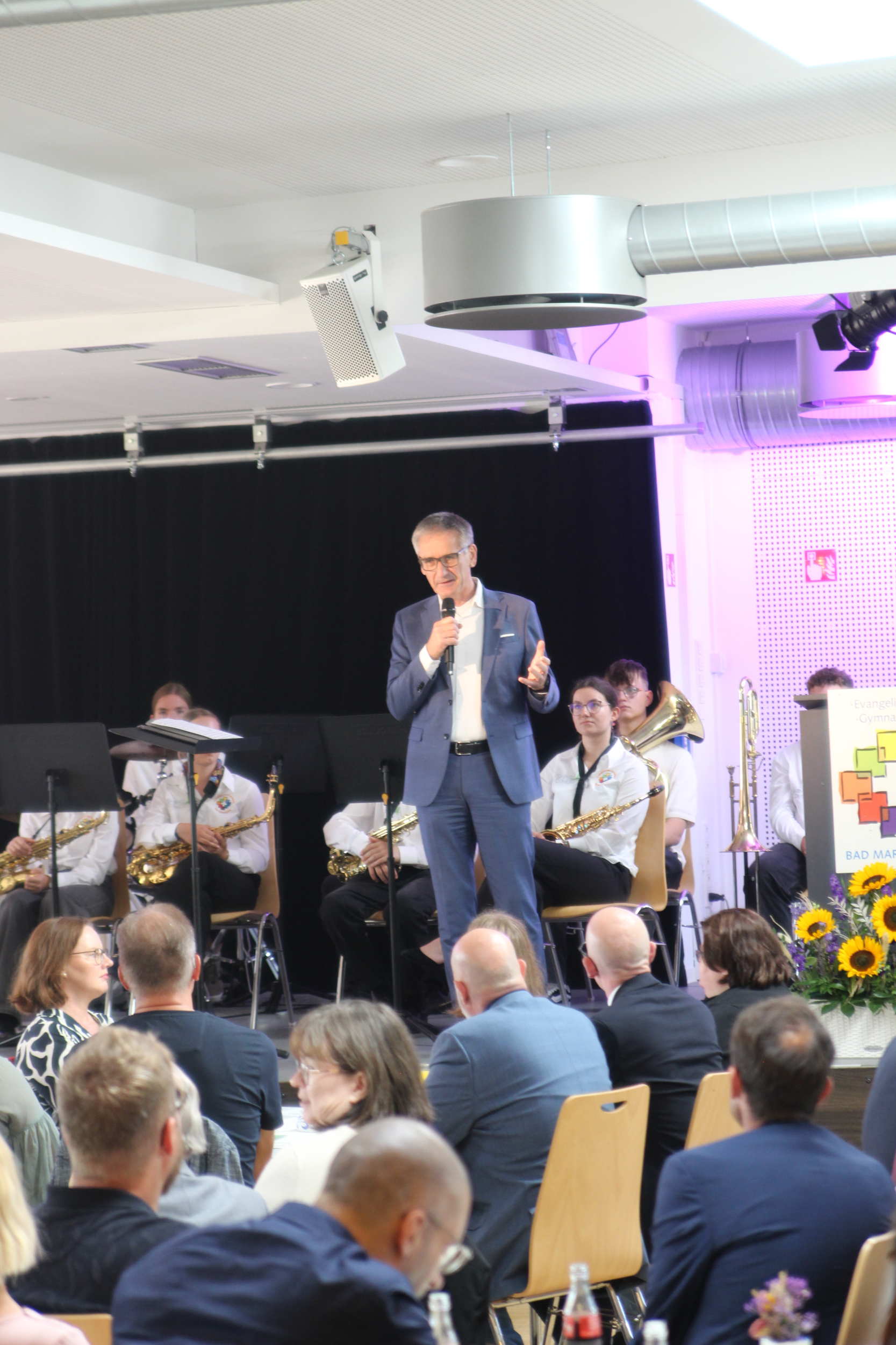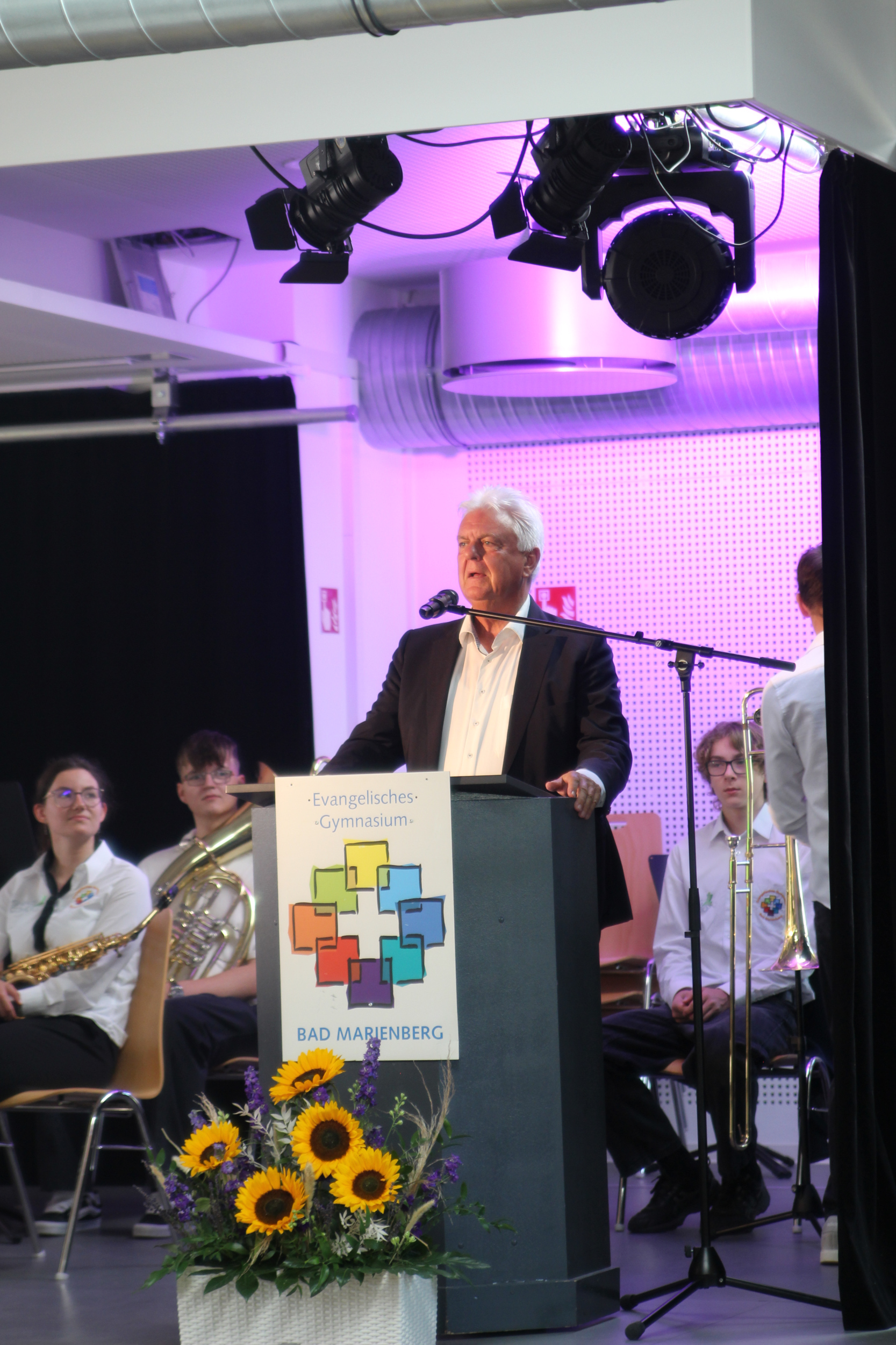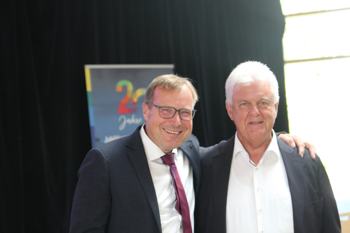 Landtagspräsident Hendrik Hering schloss sich als Redner an und blickte auf die „segensreiche Entscheidung“ zurück, die vor 20 Jahren die Gründung des EvGBM ermöglichte, die Schullandschaft im Westerwald maßgeblich bereichert hat und den Schülerinnen und Schülern der Region seitdem große Chancen ermöglicht. Hering lobte vor allem die wertebasierte Bildung am EvGBM, welche die Schule allzu oft zum Vorbild für die Schulen des Landes macht und einen wichtigen Beitrag zum Erhalt unserer freitheitlich-demokratischen Grundordnung liefert.