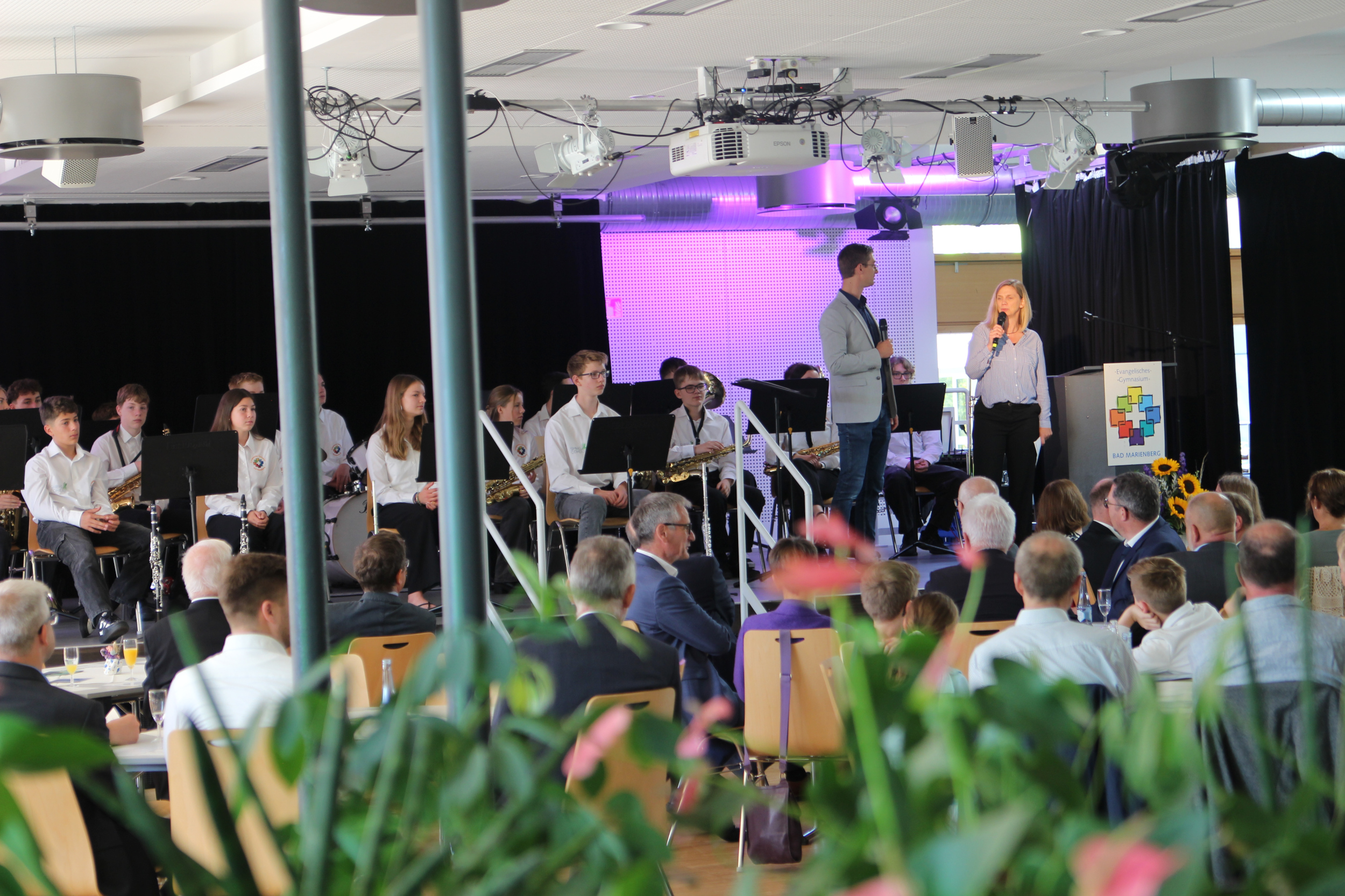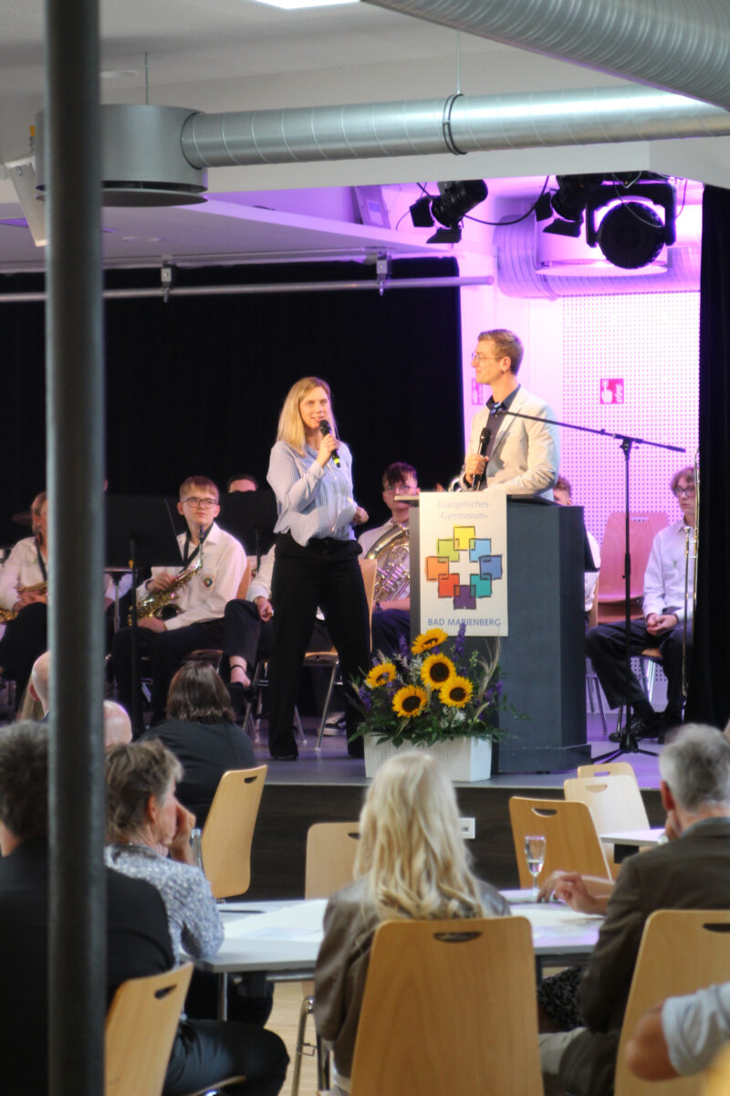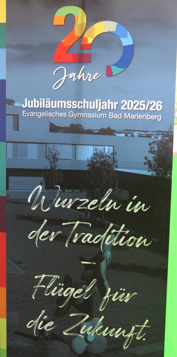 Der Meilenstein der Schulerweiterung schlug die Brücke zwischen den „Wurzeln“ der Schule in der Vergangenheit und den „Flügeln“ für die Zukunft. Mit dem Abschluss des Architektenwettbewerbs steht nun die Grundsteinlegung in naher Zukunft an. So wie sich das Gebäude der Schule weiterentwickelt, erinnerte Weigand die Gäste, so verändert sich auch die Gesellschaft und die Ansprüche an Schule: Der Schulleiter betonte, dass Themen wie ‚eigenverantwortliches Lernen‘, ‚Leistungsbewertungen‘ und ‚Lernen mit KI‘ in den nächsten Jahren am EvGBM konsequent weiterentwickelt werden. Unter diesen Vorzeichen kann sich das evangelische Gymnasium Bad Marienberg auf eine erfolgreiche Zukunft freuen.