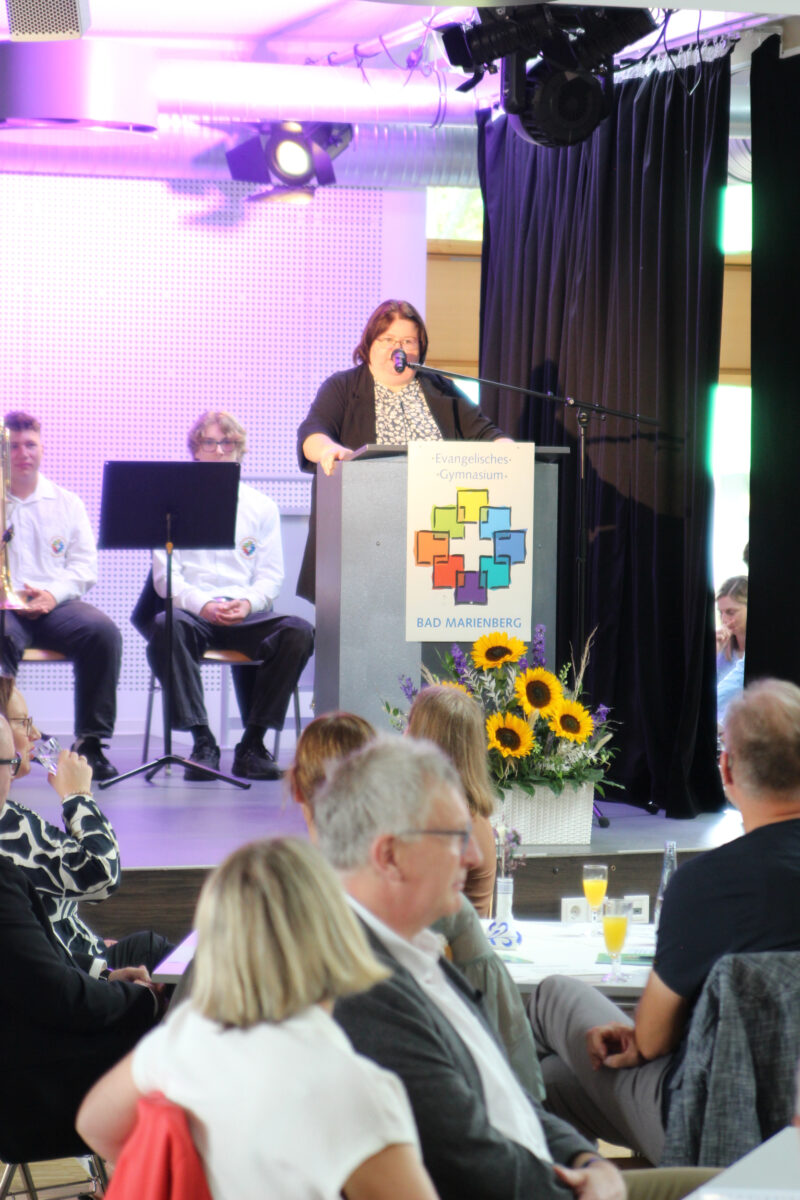 Auch die Kooperation innerhalb des Schulzentrums Bad Marienberg, mit der Verbandsgemeinde Bad Marienberg und die Zusammenarbeit mit den Gymnasien der Region betonte Weigand als hervorragend. Von den Anfängen des EvGBM als es noch kein eigenes Schulgebäude hatte und „nur“ Gast in den Räumen der Wolfsteinschule war, bis zur Etablierung als fester Bestandteil der Bildungslandschaft: „Die Zusammenarbeit war und ist motivierend, hilfreich und erfolgreich.“