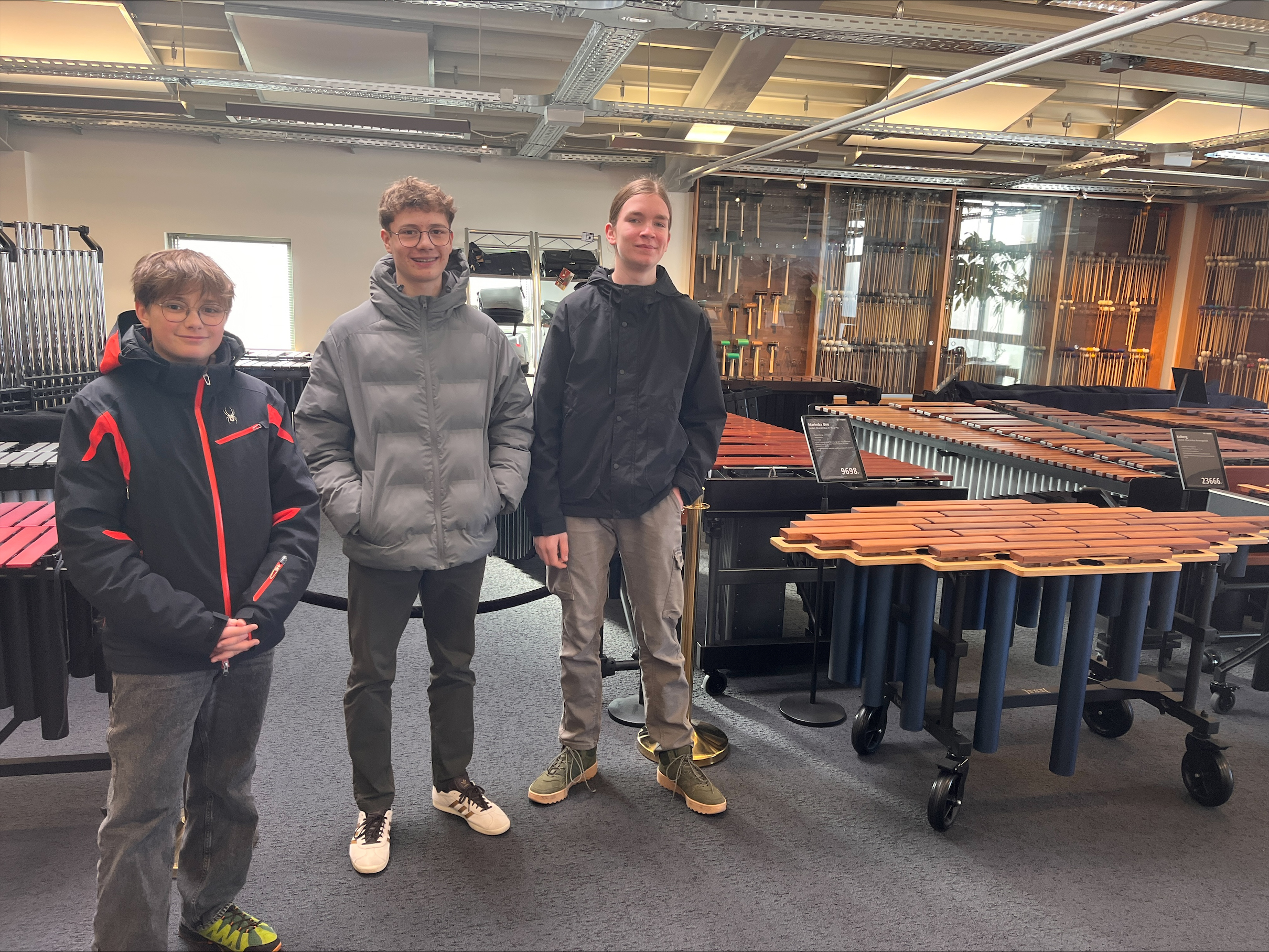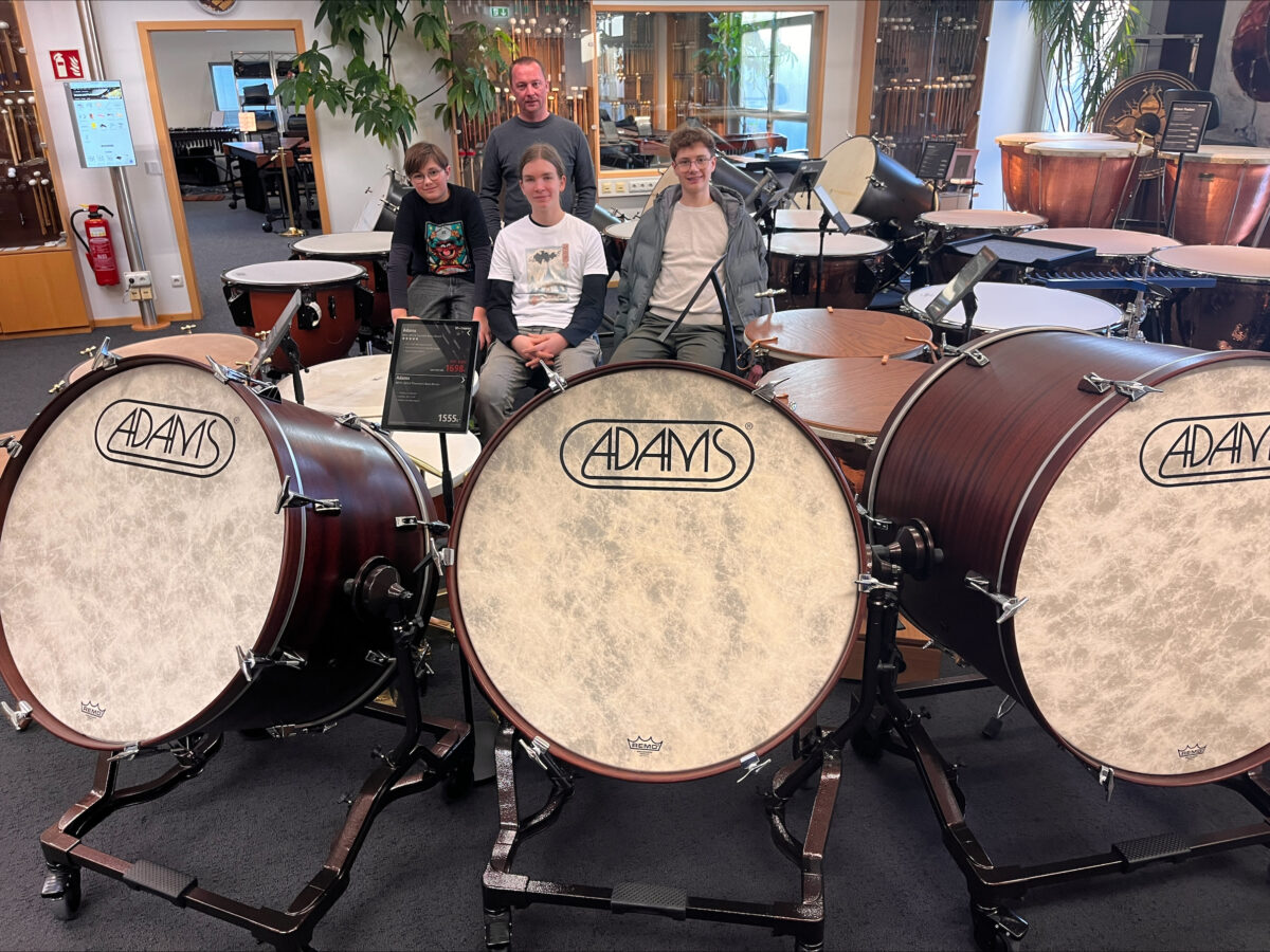 Natürlich durfte im Anschluss an die Instrumentenübergabe ein besonderer Programmpunkt nicht fehlen: eine Exkursion zum Musikhaus Thomann in Burgebrach. Für die Schülerinnen und Schüler war dieser Besuch ein eindrucksvolles Erlebnis. Vor Ort konnten sie nicht nur die beeindruckende Vielfalt an Instrumenten bestaunen, sondern auch hautnah erleben, wie ein weltweit bekanntes Musikhaus arbeitet.