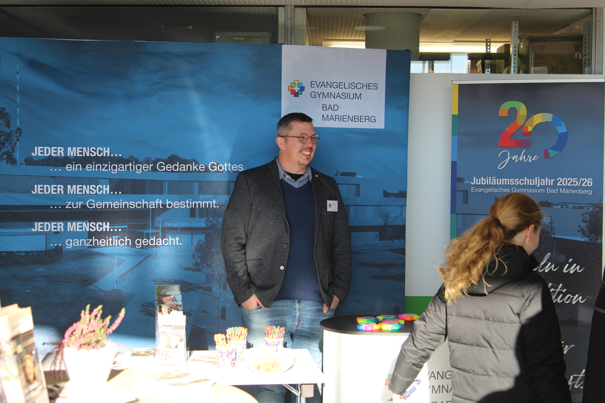 Trotz des beißend kalten Windes und der dünnen Schneedecke fanden am vergangenen Samstag, den 22.11.2025 bei strahlendem Sonnenschein eine Vielzahl von Gästen den Weg durch den winterlichen Westerwald zum Tag der offenen Tür am evangelischen Gymnasium. Und das war auch gut so, denn es gab mannigfaltiges zu sehen: Überall im Schulgebäude und auf dem gesamten Schulgelände warteten spannende Infostände, Mitmachangebote, fachliche Demonstrationen und Speisen und Getränke.