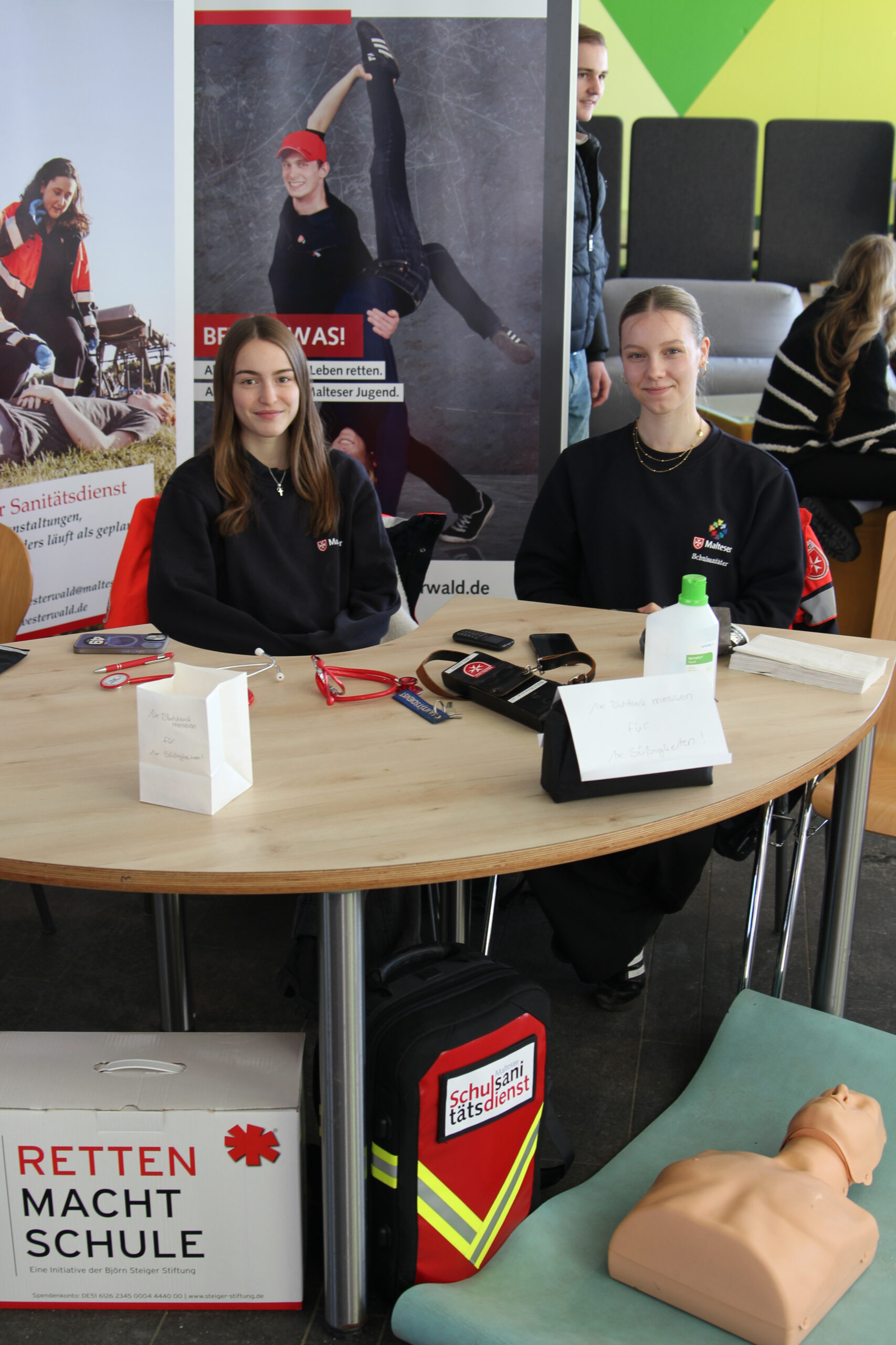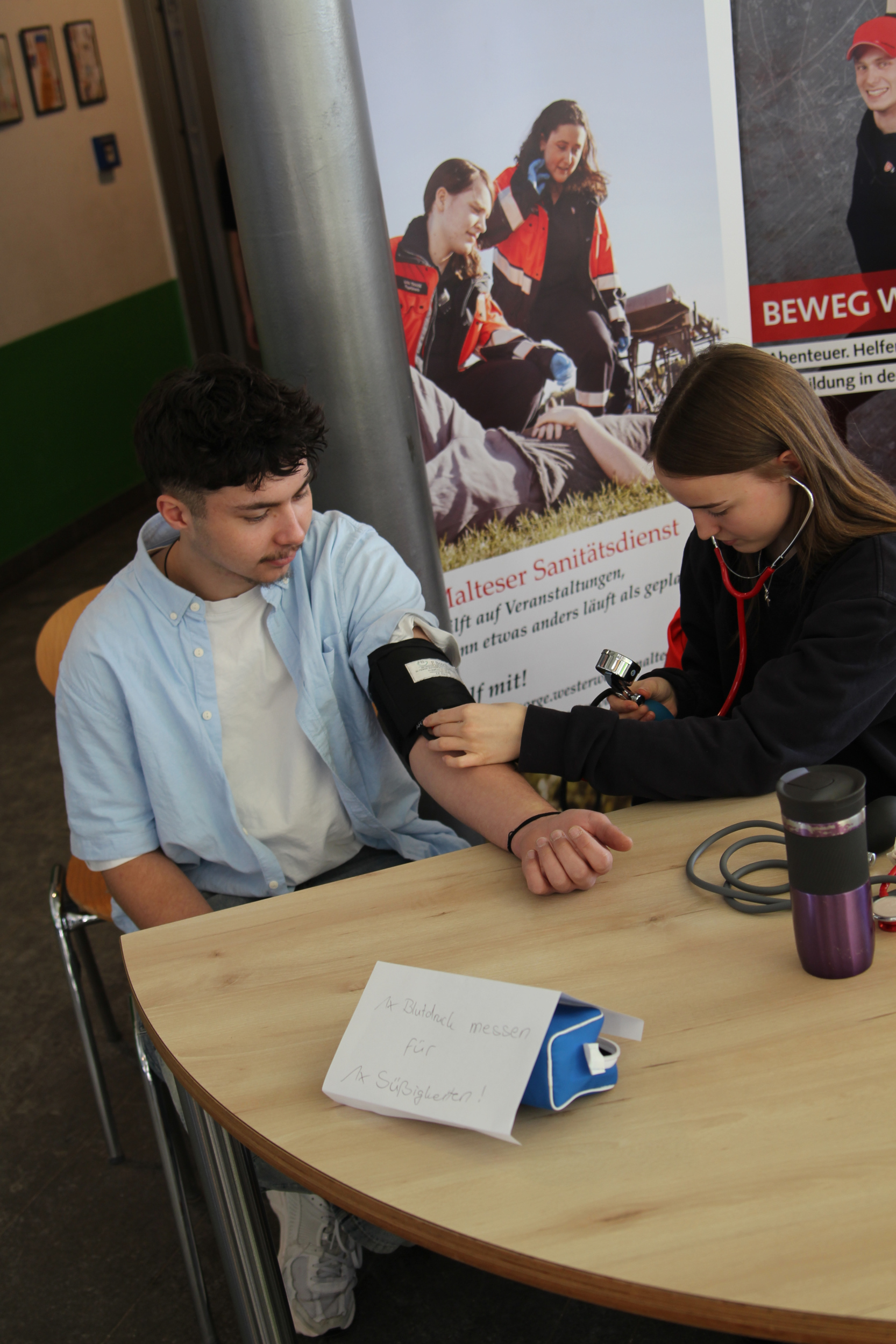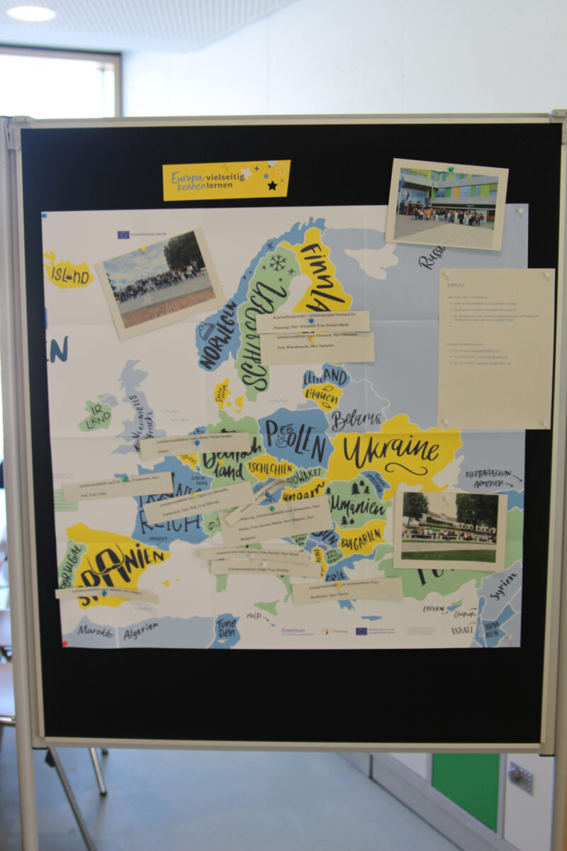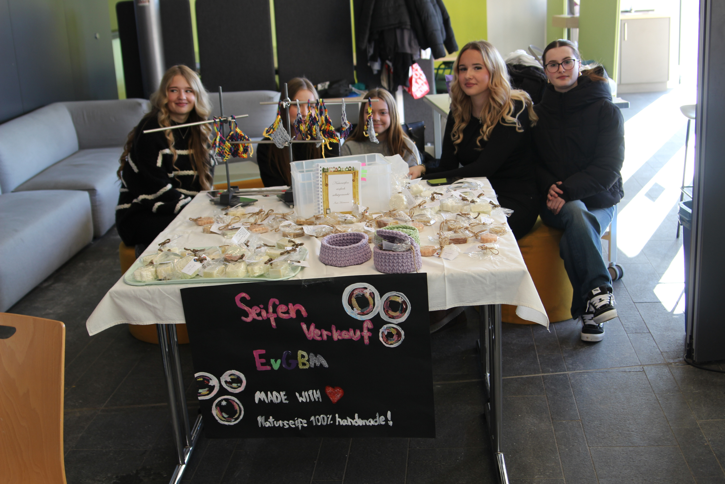 Im Foyer warteten Infostände der Schulleitung, des Fördervereins und des Schulelternbeirats, der Schulsanitätsdienst präsentierte seine Arbeit und der Fachbereich Kunst verkaufte selbstgemachte Seife und Weihnachtskarten. Außerdem bot die Schülervertretung selbstgemachte Kuchen an und die Fachschaft Französisch backte Crêpes.