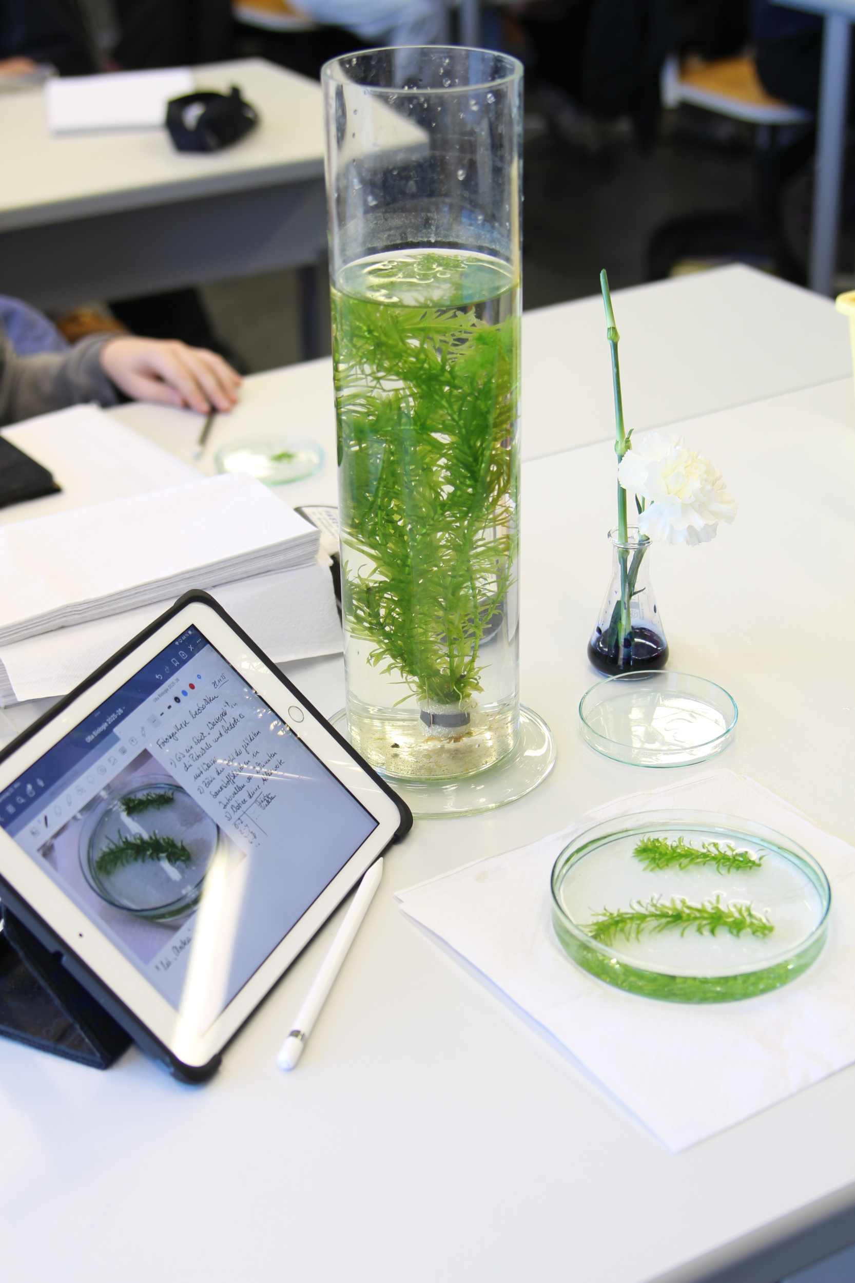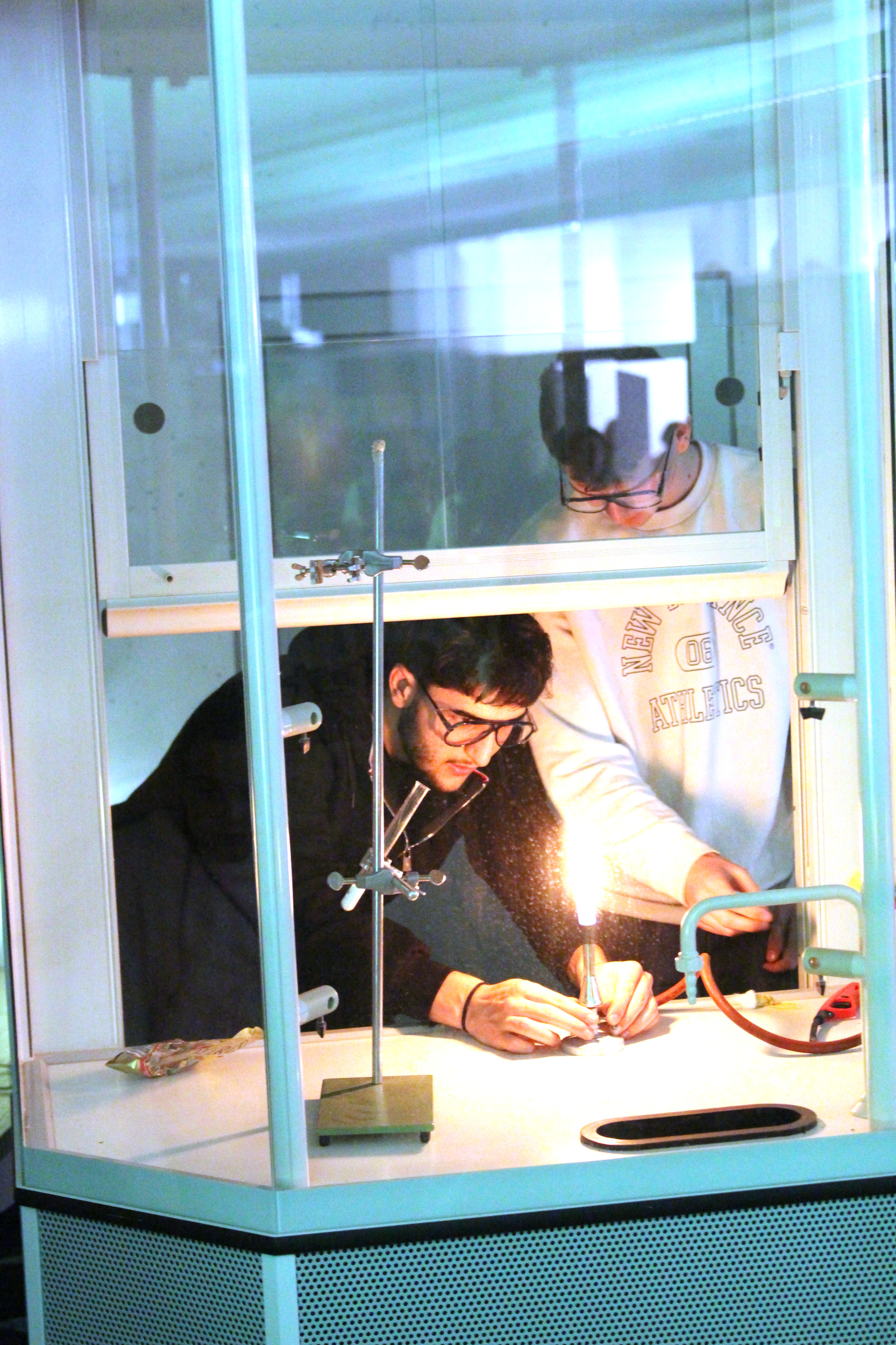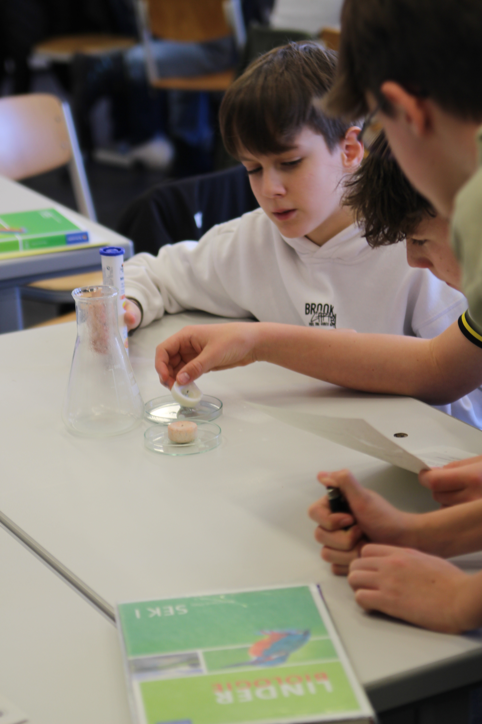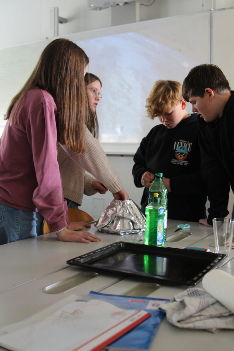 Im ersten Obergeschoss wartete das Bastelangebot der Schulseelsorge, die Informationen zum christlichen Profil der Schule und die Darts-AG lud zum Mitmachen ein. Im Trakt der Naturwissenschaften wurde es besonders spannend, etwa bei den Experimenten zur Photosynthese und rund um physikalische Phänomene und den chemischen Experimenten, bei denen Gummibärchen flambiert und Feuertornados erzeugt wurden.