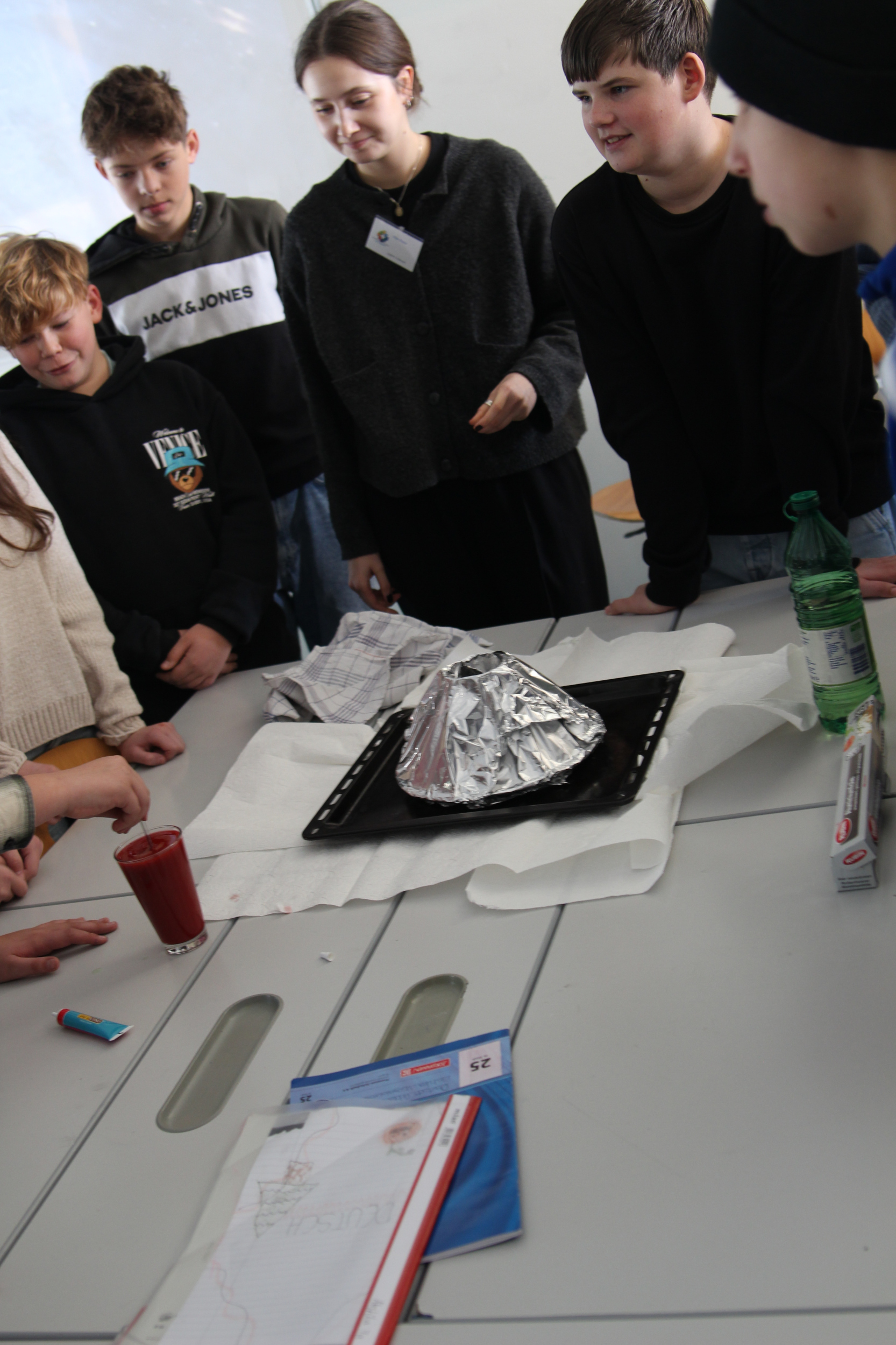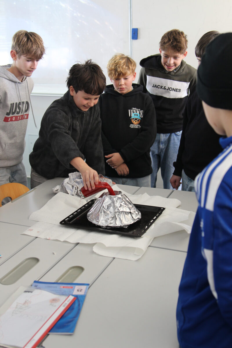 Parallel zu dem bunten Treiben fand in den Klassenräumen Unterricht statt; sodass der Tag der offenen Tür nicht nur Show war, sondern den kleinen und großen Besuchern auch authentische Einblicke in den Unterrichtsalltag bot. Natürlich gab es aber auch hier einige Highlights, wie etwa der nachgestellte Vulkanausbruch im Erdkundeunterricht der Jahrgangsstufe 7 und die gesanglichen und musikalischen Einlagen der Sing- und Bläserklassen.