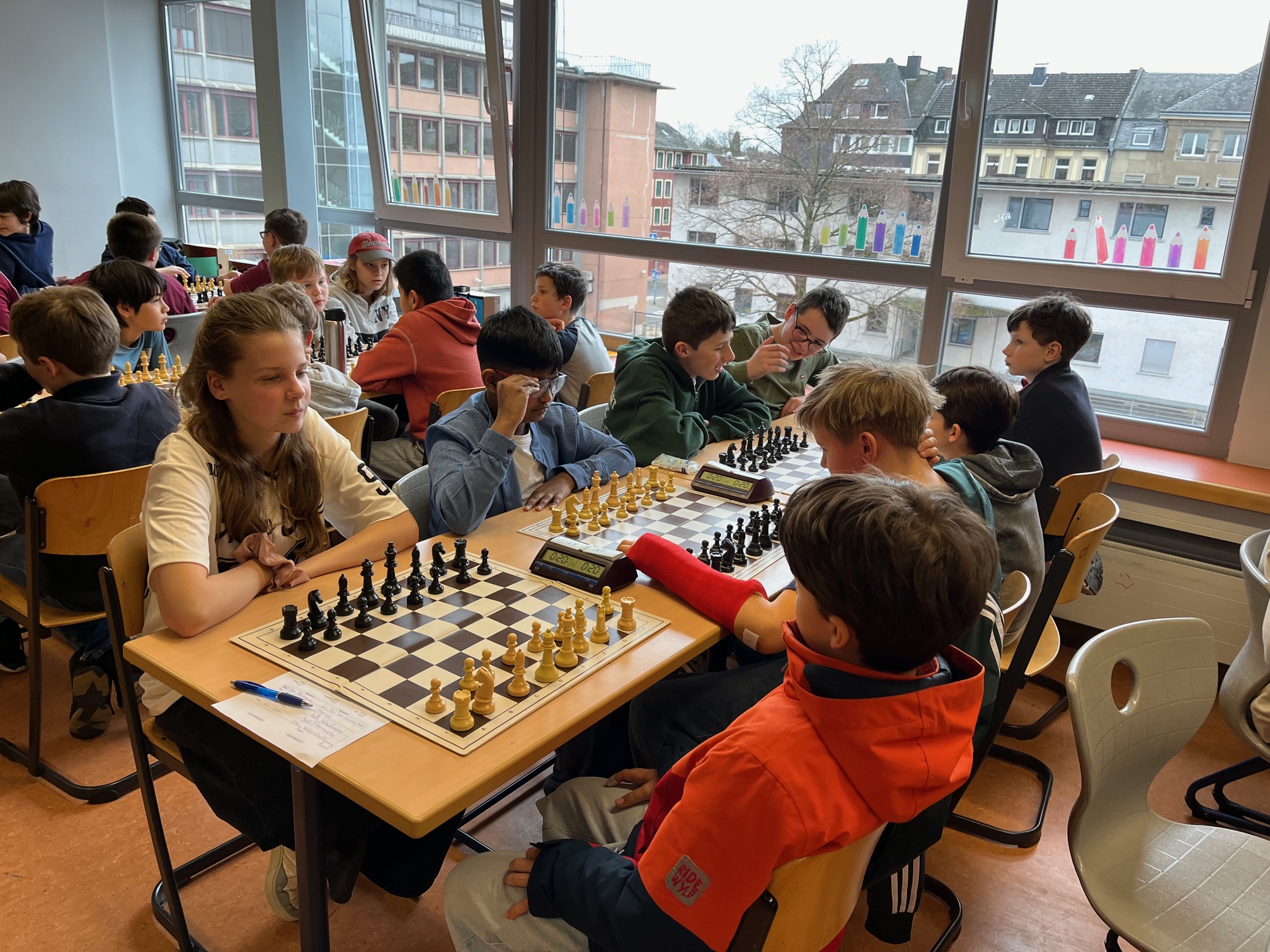 Nach dem sensationellen Sieg bei der Regionalmeisterschaft im Februar durfte unsere Schulschachmannschaft am 14. März 2026 bei der Rheinland-Pfalz-Meisterschaft in Koblenz antreten. Mit dabei waren Milan, Matti, Luckas, Agash und May.