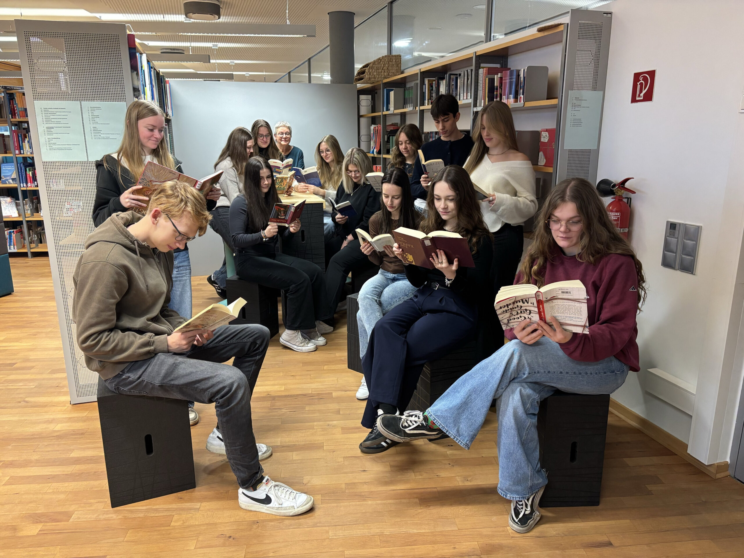 Die Bibliothek ist kein „Pausenhof“! Aber die Bibliothekarin Frau Gläser freut sich, wenn recht viele Schüler*innen sich Bücher ausleihen oder die Bibliothek für Recherchezwecke und Klausurvorbereitung nutzen.