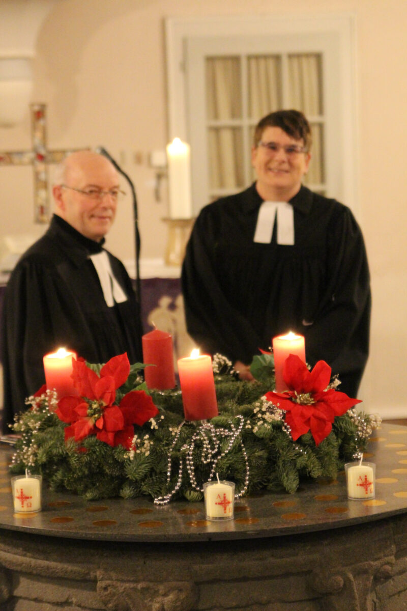 Herr Thinius an der Orgel begleitete unseren gemeinsamen Gesang: „In das Warten dieser Welt“ und ein aus vollen Lungen kräftig gesungenes „O du fröhliche“. Ohne zuverlässige Helferinnen und Helfer im Hintergrund geht natürlich nichts: Frau Treptow im Küsterdienst, das Technikteam und die Schülerlotsen. Herzlichen Dank allen Beteiligten und Mitfeiernden. Die Kollekte für Utho Ngathi machte deutlich, dass wir besonders auch an Weihnachten über den Tellerrand hinausschauen können.